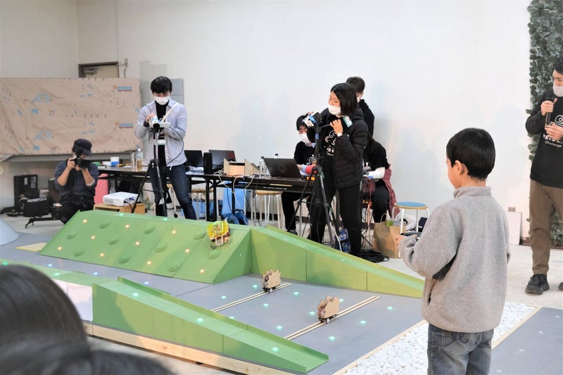 東葛側の観戦もとても白熱しました!装飾が凝っていたり、操縦やコース選びがうまかったり。最難関のモンスターマウント富士を登り切ったときには、もちろん両会場で拍手喝采。場所は離れていても、西粟倉と東葛で同じ目標に向かって頑張ってきた挑戦者たち・運営たちは、いつのまにかひとつに。私も手に汗を握ってしまいました。