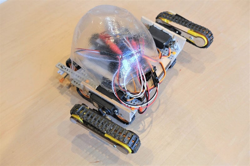 続いて二番手はozzy。彼のロボット「Mr.yellow」は、チャームポイントの黄色いボディに加えて、モーターを増設、自作の木で出来た車輪も搭載していました。